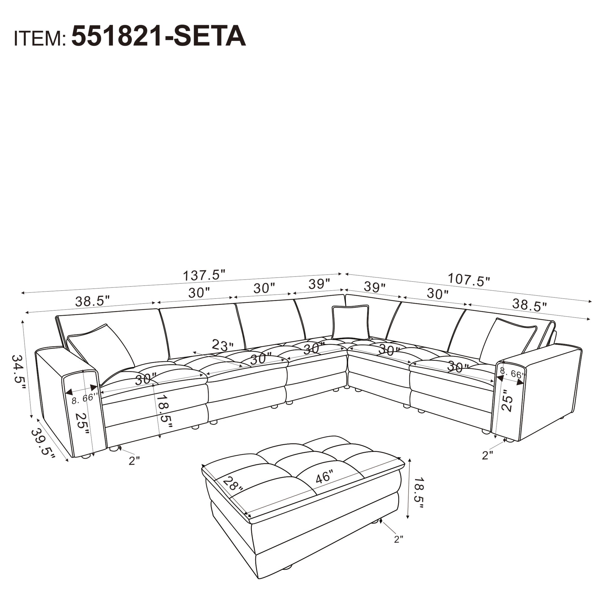 This retro-inspired modular sectional brings a blend of comfort and contemporary style to your living space. Featuring soft blue corduroy upholstery and a sophisticated grid-tufted design, it delivers both elegance and coziness. The fully encased solid and engineered wood frame ensures stability for heavy use, while sinuous spring seating and pocket coil springs provide exceptional support and durability. A matching tufted ottoman adds versatility, offering extra seating or leg support for a complete lounging experience.
