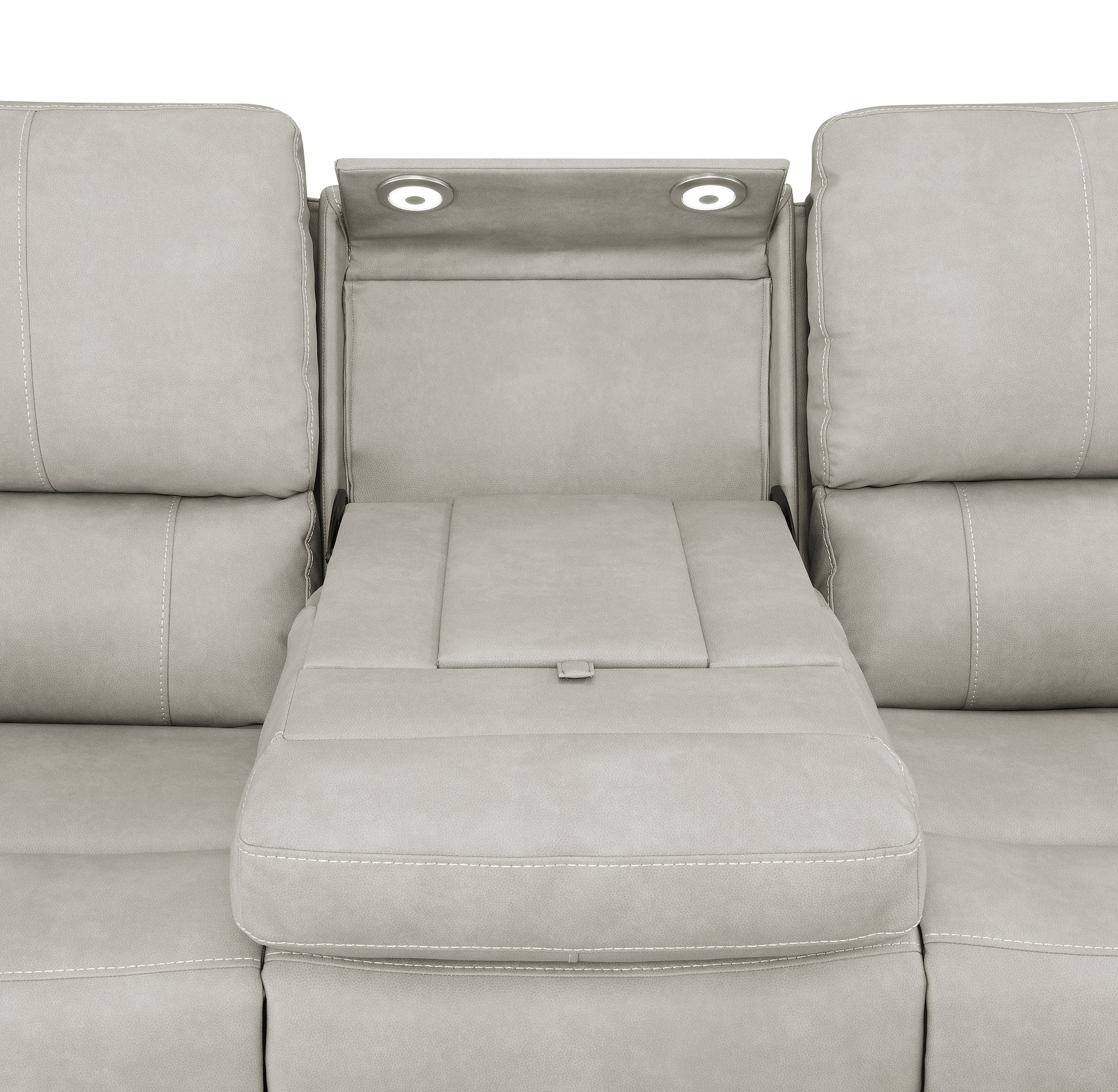 • Hidden stainless steel cup holders in armrests keep beverages within easy reach