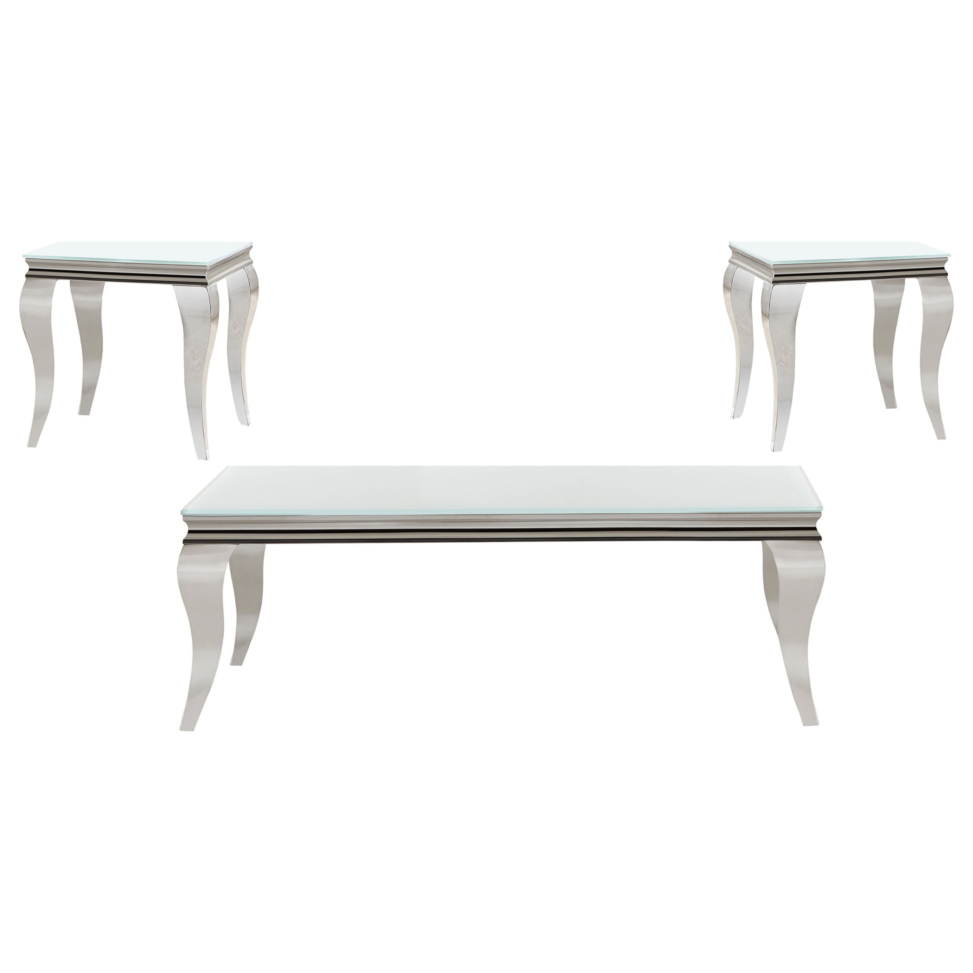 Carone 3-piece Glass Top Coffee and End Table Set White