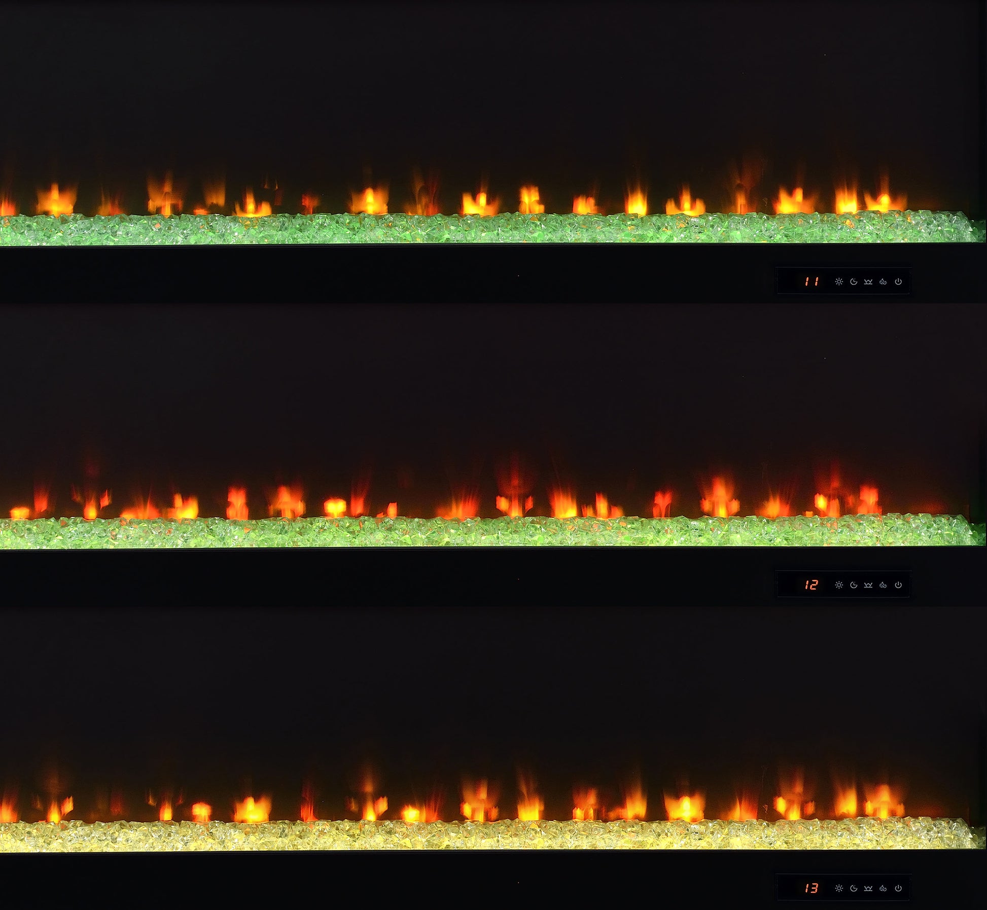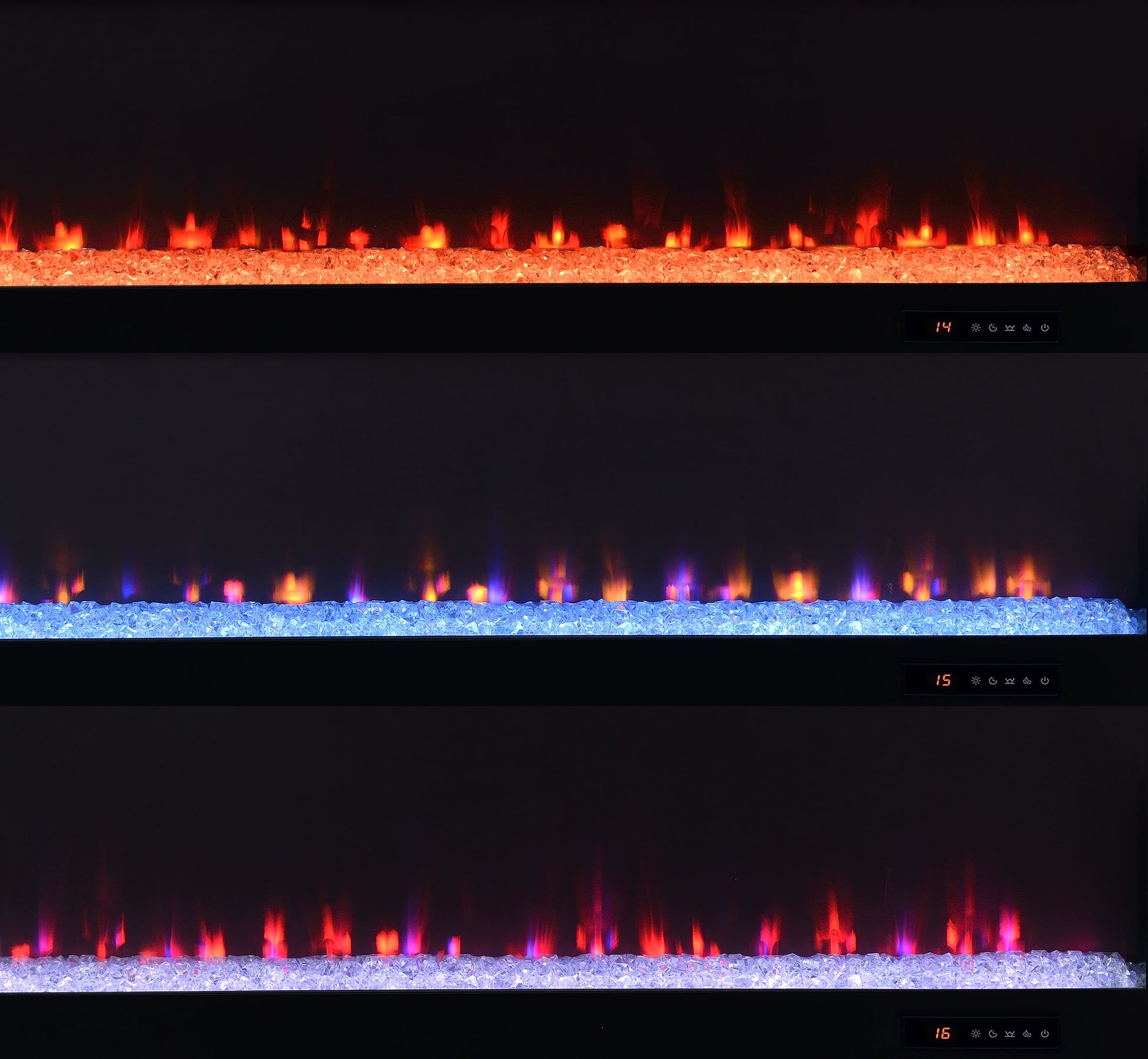 • TV stand flame visualizer console with crushed acrylic crystals and fifteen flame color options
