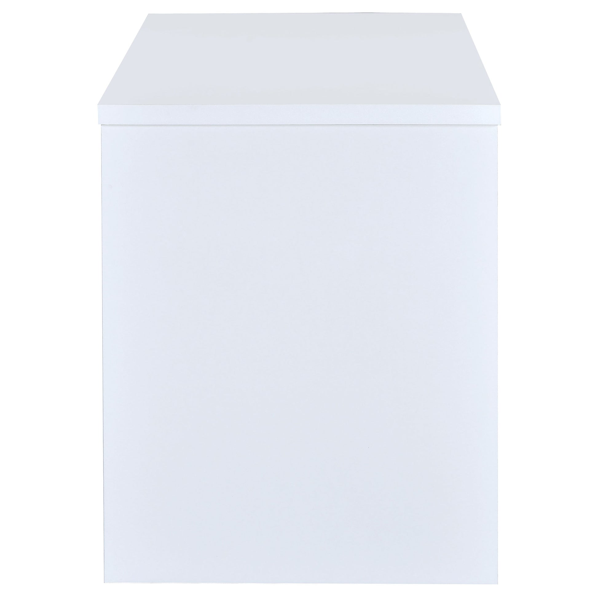 Maximize efficiency in any workspace with this sleek office desk. Designed with a reversible configuration, the attached storage can be placed on either side to suit your layout. A spacious desktop provides room for projects, while a storage drawer and a file cabinet keep essentials neatly organized. The file drawer accommodates both letter and legal-sized documents for versatile use. Built with engineered wood and laminate veneer, this desk blends durability with modern style for home or office settings.