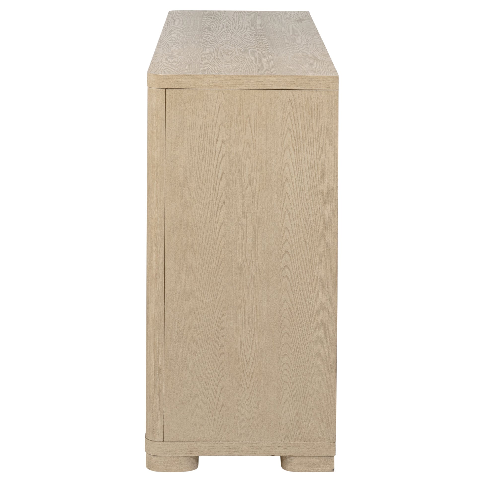 • Six-drawer dresser in a light elm finish for a refined, contemporary aesthetic