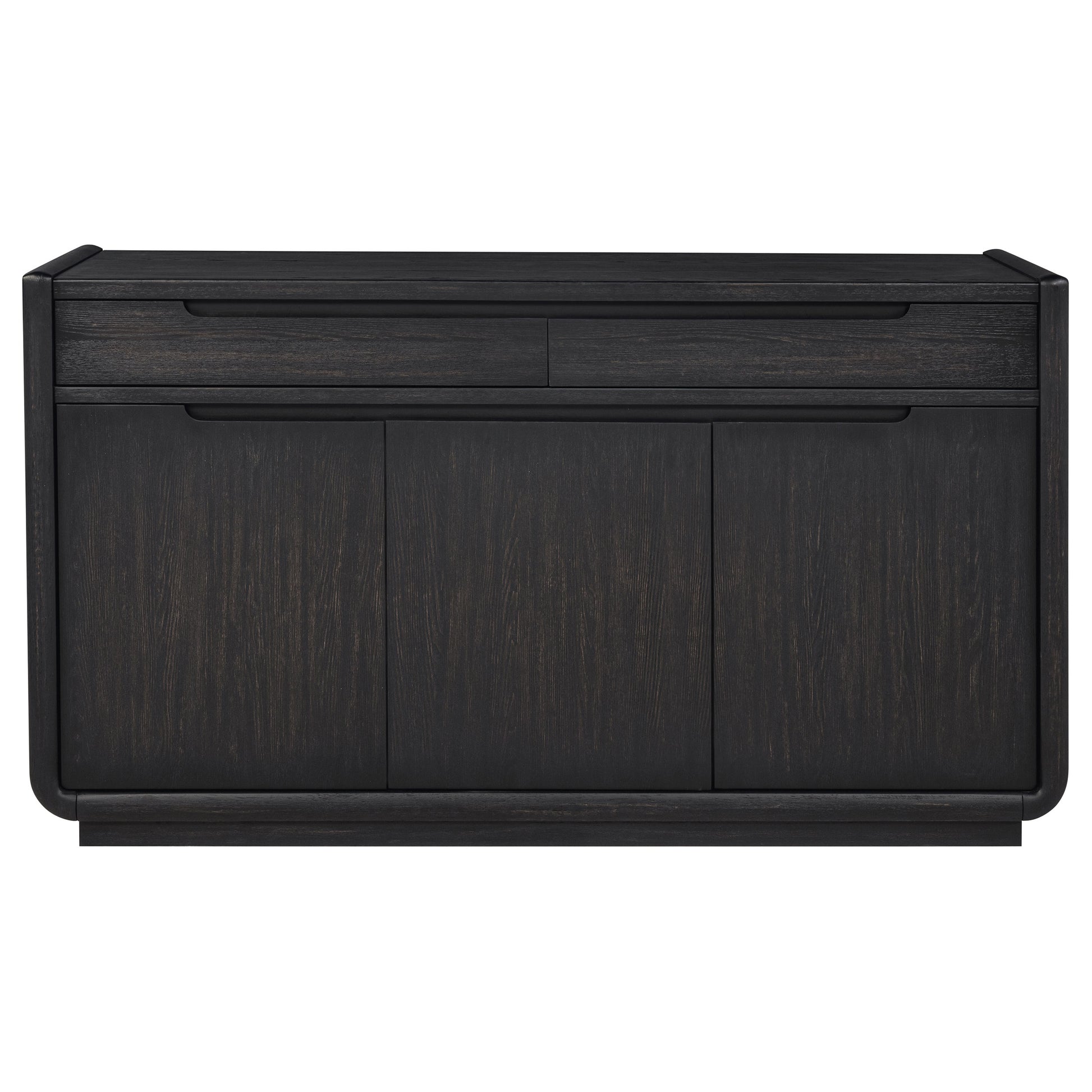 • Dining sideboard in burnished black with sculpted edges and clean, recessed pulls