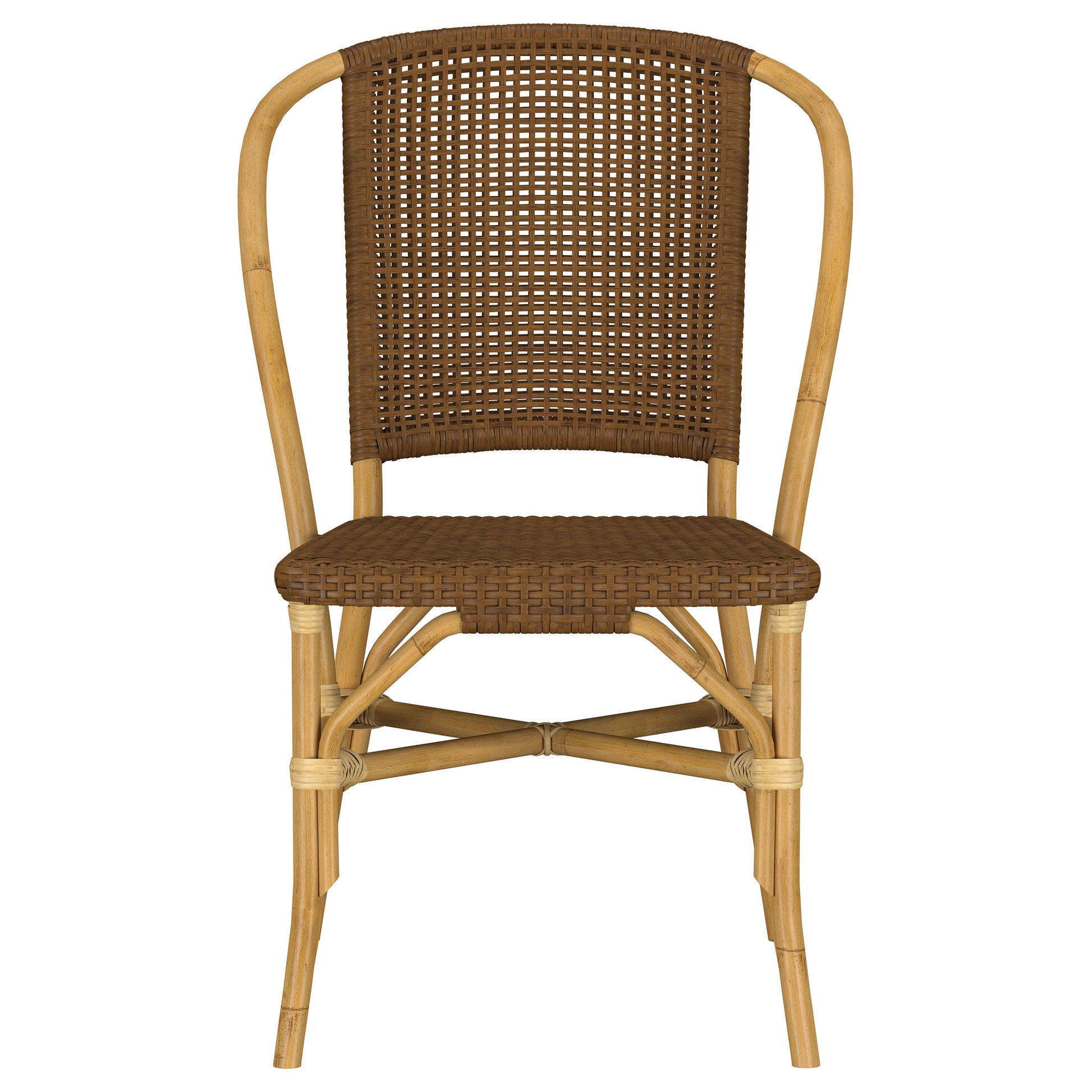 Natural texture and timeless craftsmanship come together in this artisan-inspired side chair. A gently curved rattan frame offers organic beauty and lightweight strength, while woven rattan webbing across the seat and back adds dimension and breathability. Finished in a warm brown tone that highlights each handcrafted detail, this chair brings a relaxed, sun-washed elegance to dining spaces, patios, or casual indoor settings.