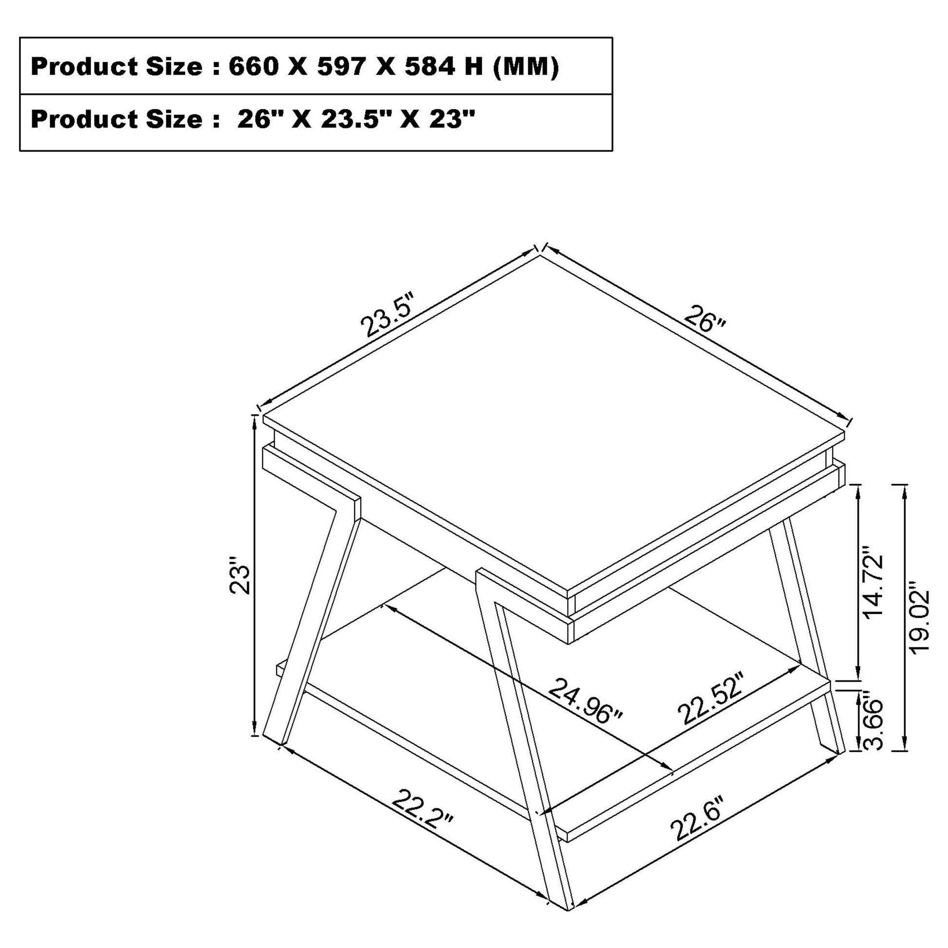 • End table features a spacious top and lower shelf