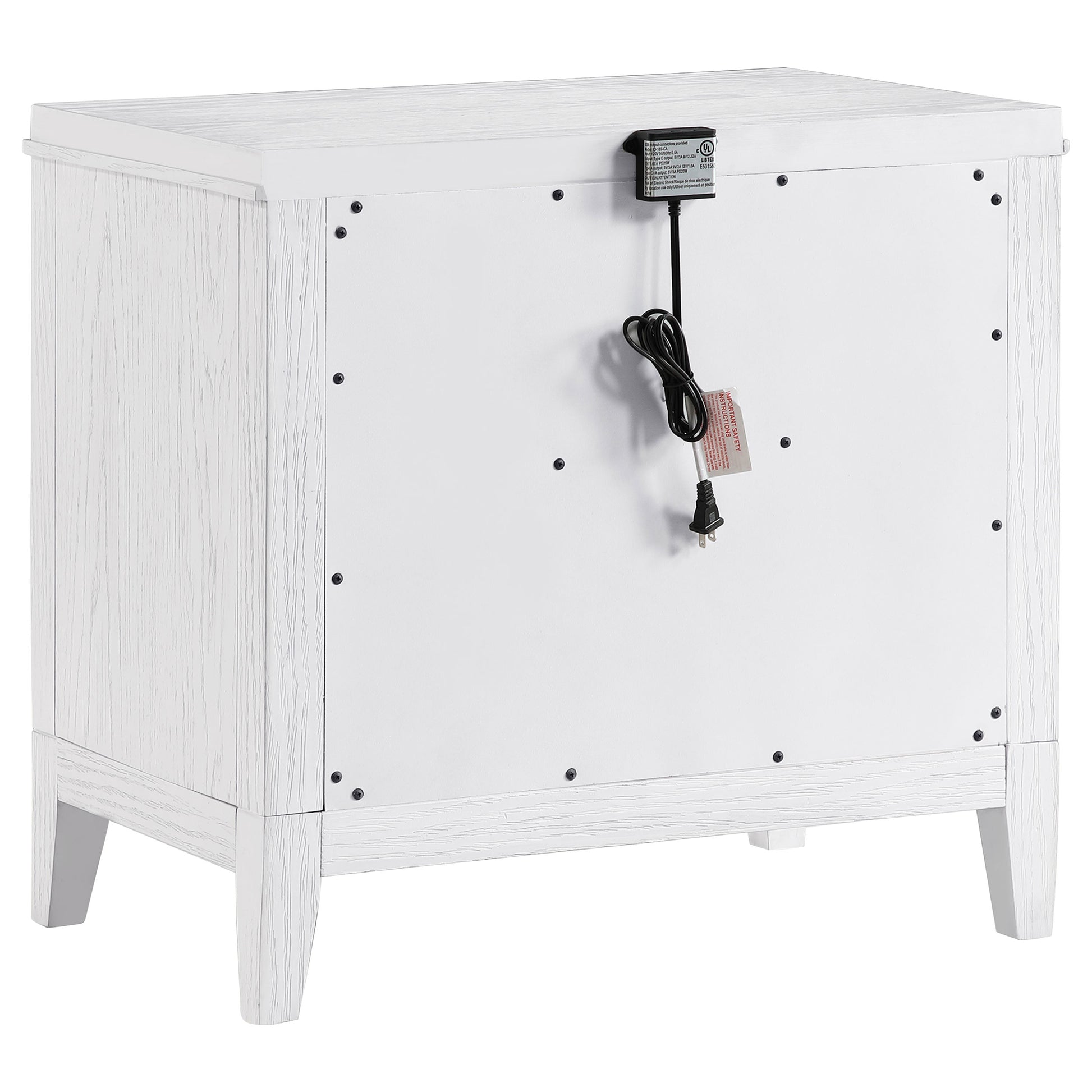 • Wood Finish: Distressed White