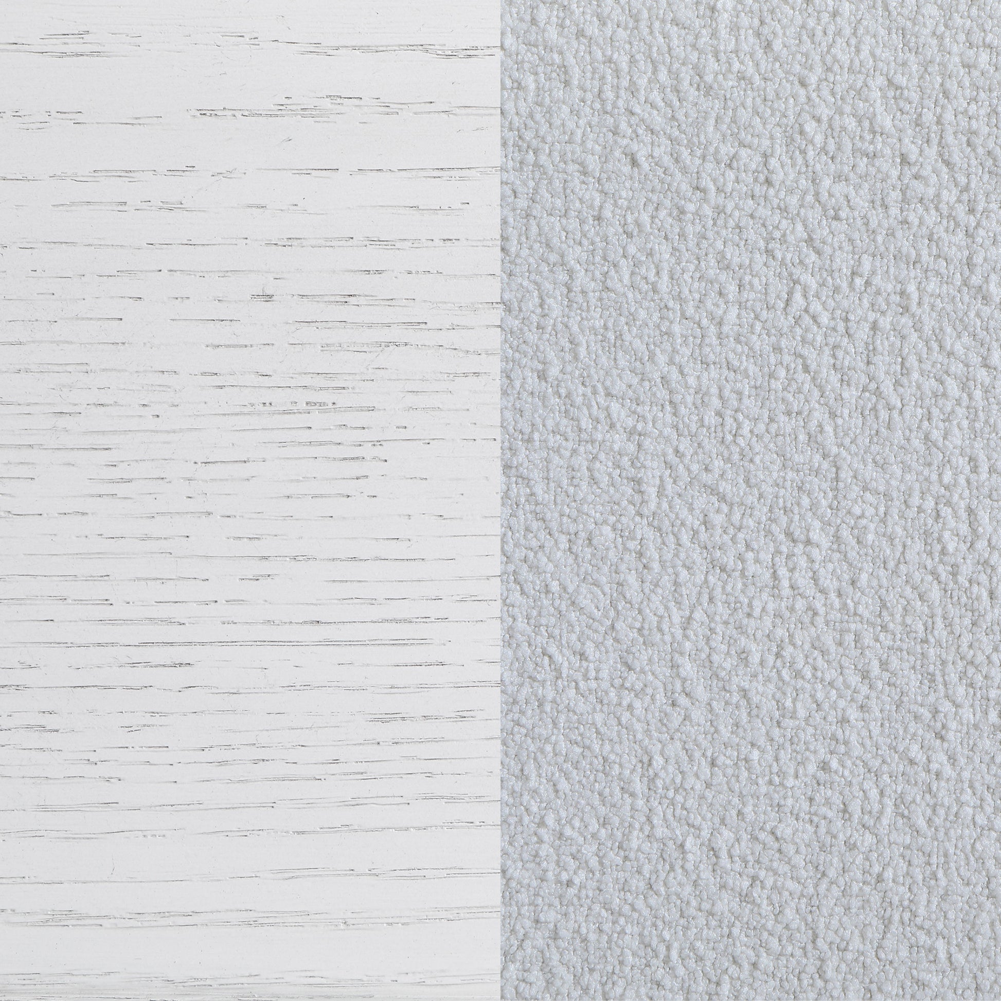 • Distressed white finish highlights wood grain details and bar hardware to create texture and depth