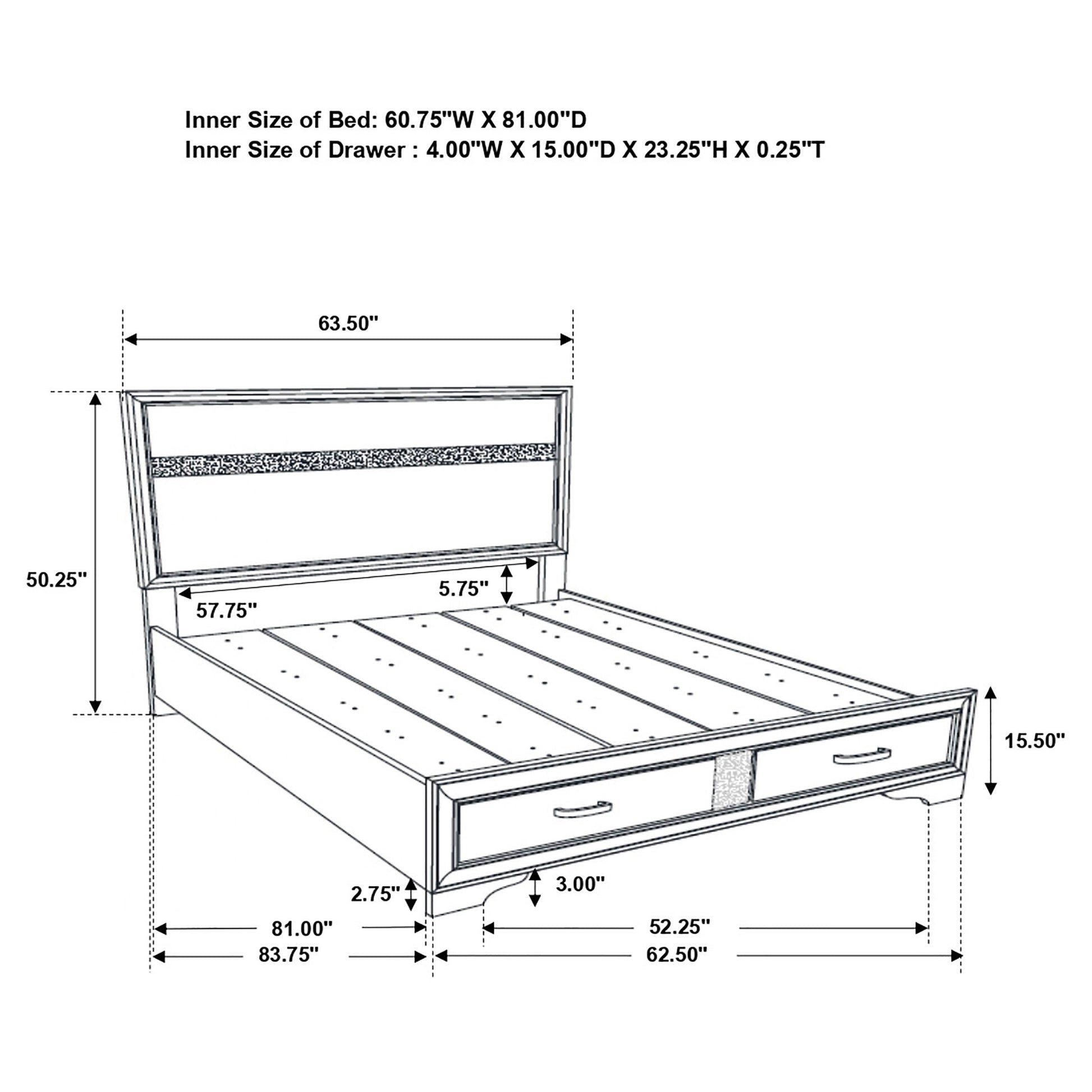 This alluring bed from the Miranda collection has both fashion and function. It features crisp lines and a headboard that's as simple as it is impressive. The footboard is built with two roomy drawers to hold extra sheets and blankets. The bed has an effortless timelessness and elegance. Add to the bedroom for a charming ambiance that's sure to please.