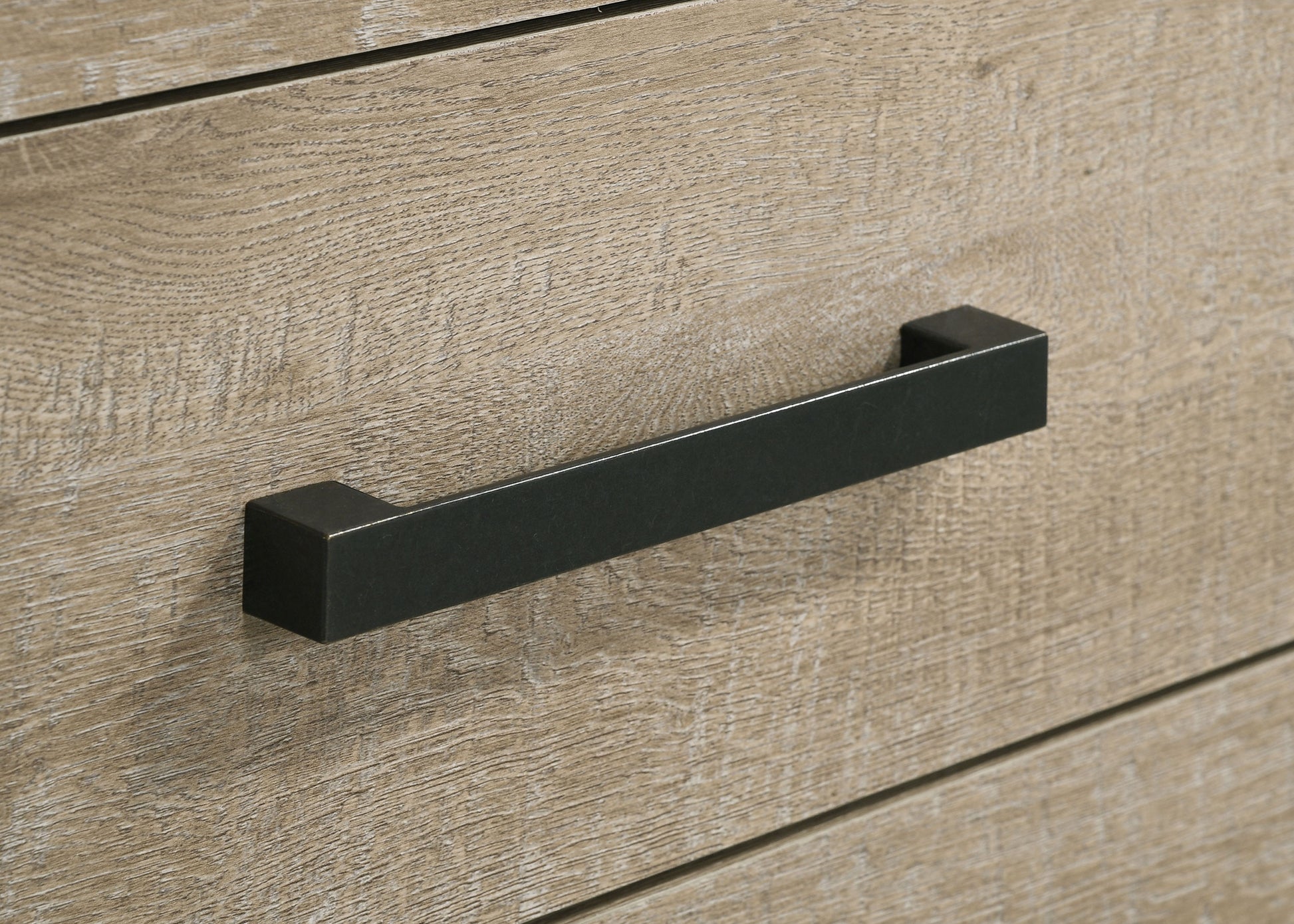 • Dark bronze metal handles provide a modern and contrasting touch
