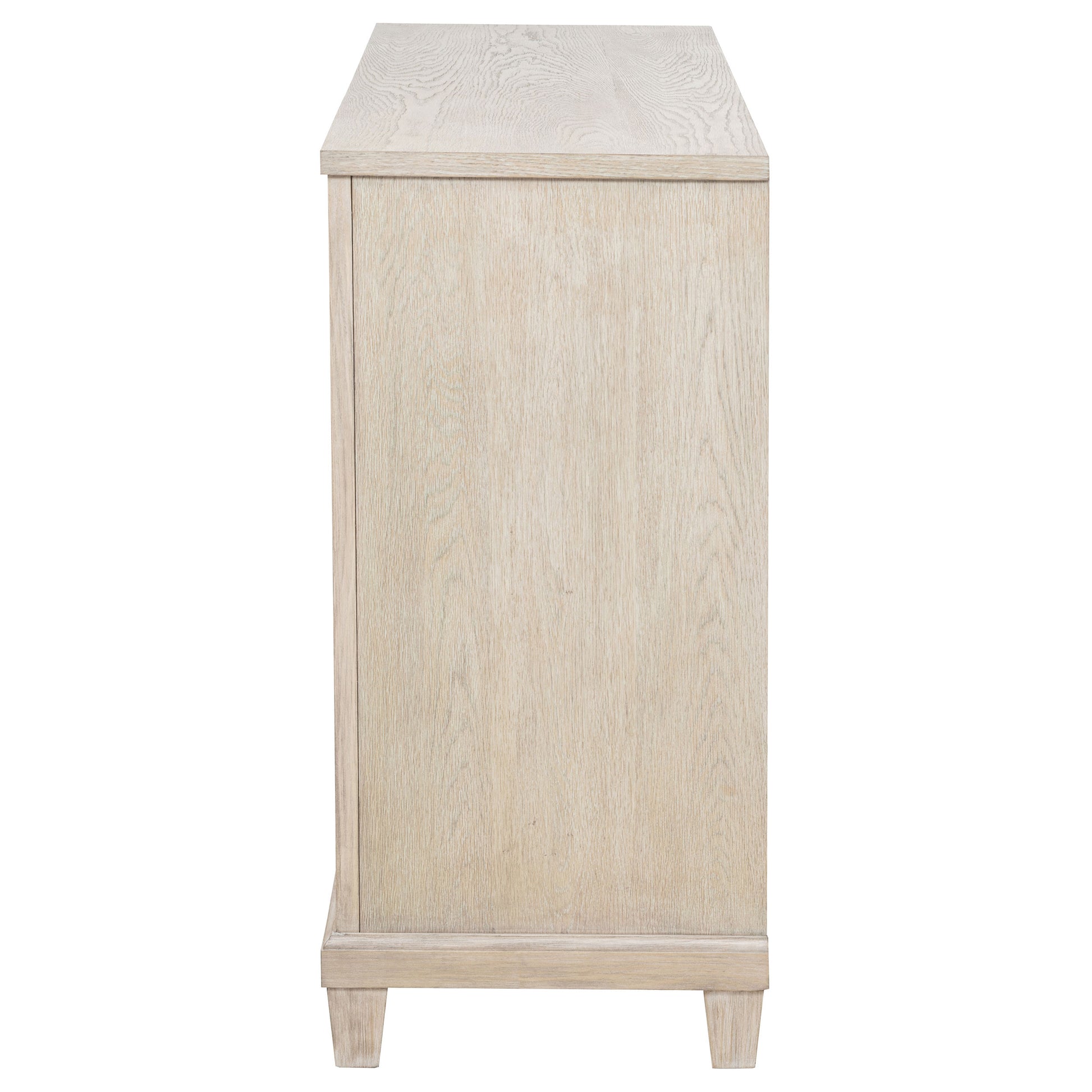 Softly structured and beautifully balanced, this six-drawer dresser brings timeless charm to the bedroom. Framed with clean lines and stepped trim, it offers generous storage behind a refined facade. The washed oak finish reveals natural wood grain, while polished nickel ring pulls add a hint of shimmer. Crafted from poplar, oak veneer, and engineered wood, it brings enduring grace and practical elegance to daily living.