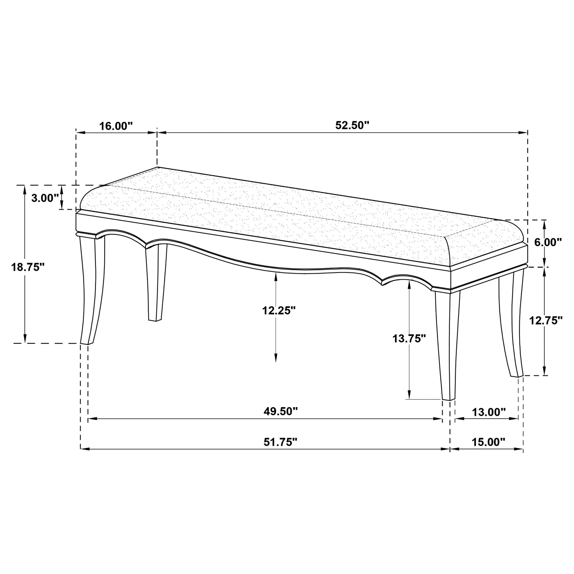 This French Provincial-inspired bed-end bench combines timeless elegance with functional comfort. Framed in solid poplar, engineered wood, and mango veneer, it features a washed mango finish that highlights the natural wood grain. The cushioned seat is upholstered in soft ecru fabric, offering a refined touch and a comfortable place to sit. Gracefully curved legs and scalloped detailing enhance its classic design, making it a perfect accent piece for the foot of the bed or additional seating in any space.