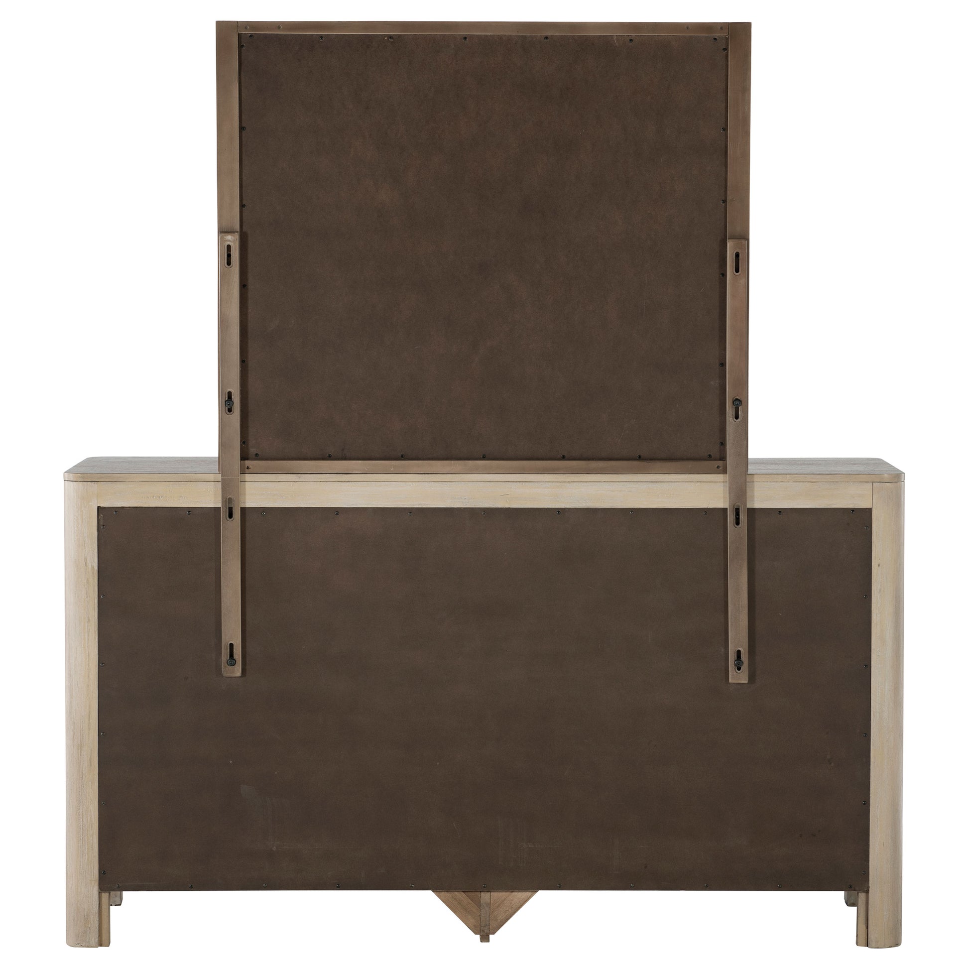 With its broad frame and softened curves, this dresser and mirror set radiates quiet confidence and poise. Sculpted edges flow gracefully around nine generous drawers, while the tall mirror reflects light and space with understated beauty. A hidden jewelry tray in the top drawer adds a thoughtful touch of luxury. Designed to bring harmony and order, this piece is both a centerpiece and a sanctuary for daily rituals.