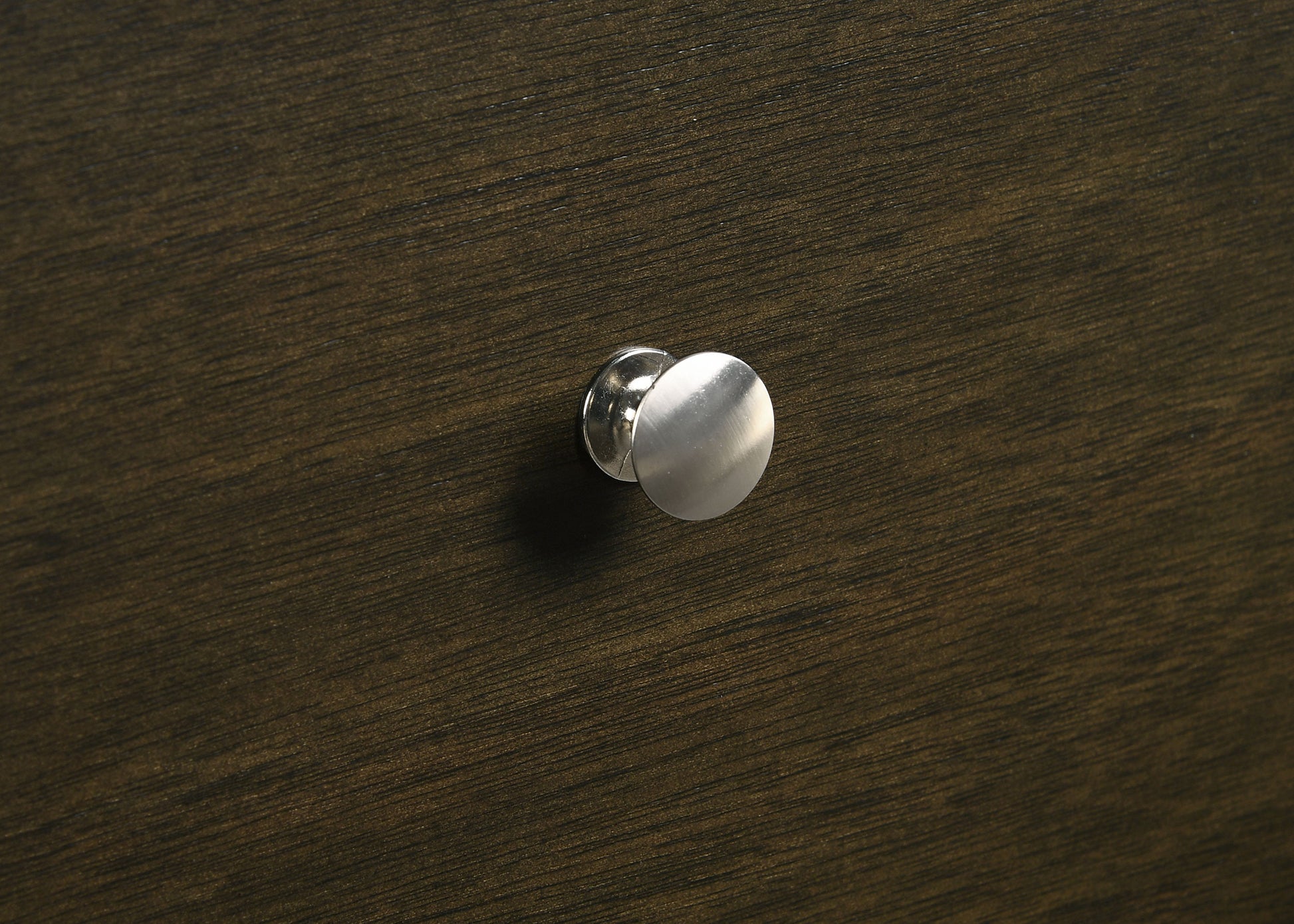 • Brushed nickel hardware and center metal glides adds a modern touch